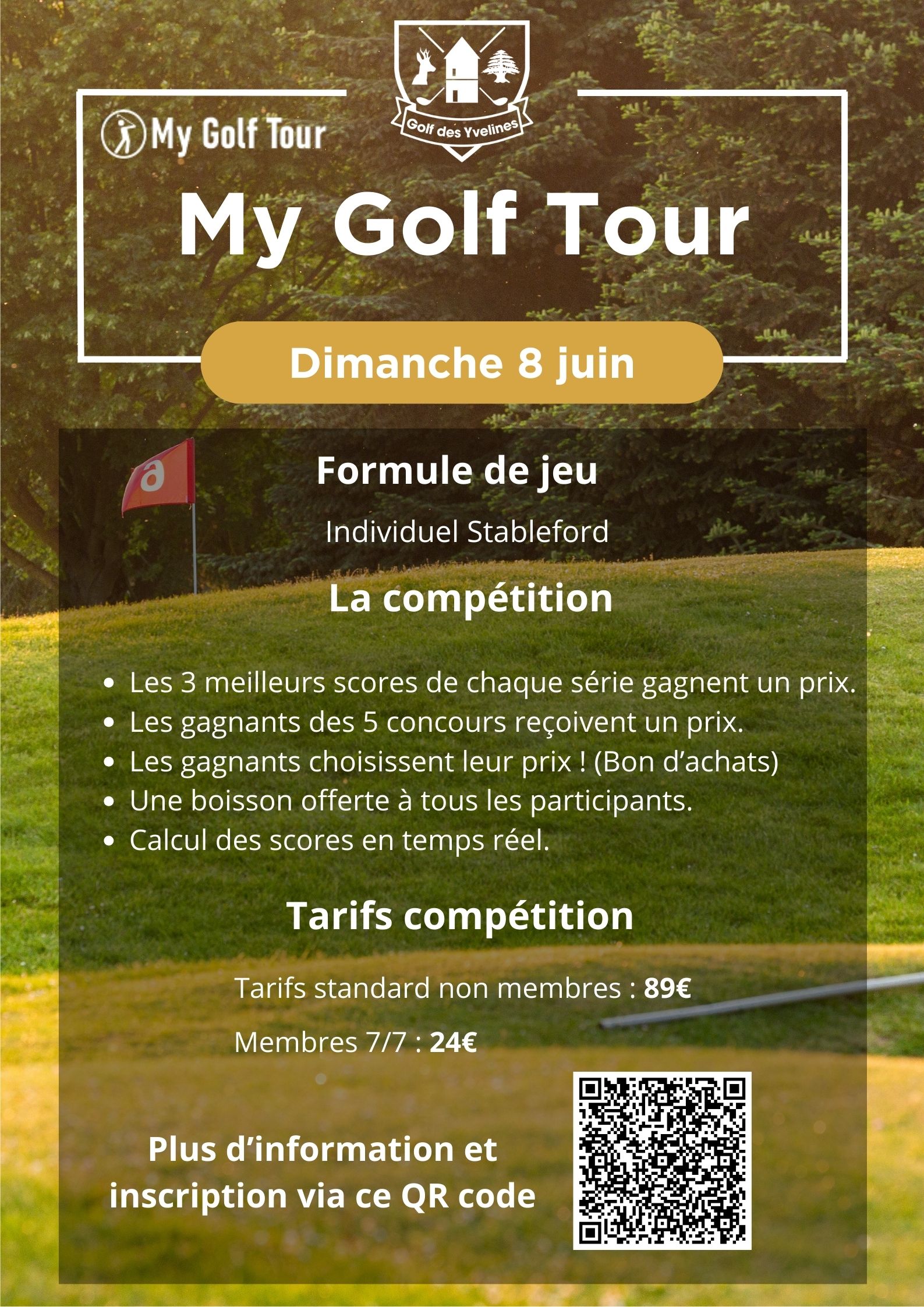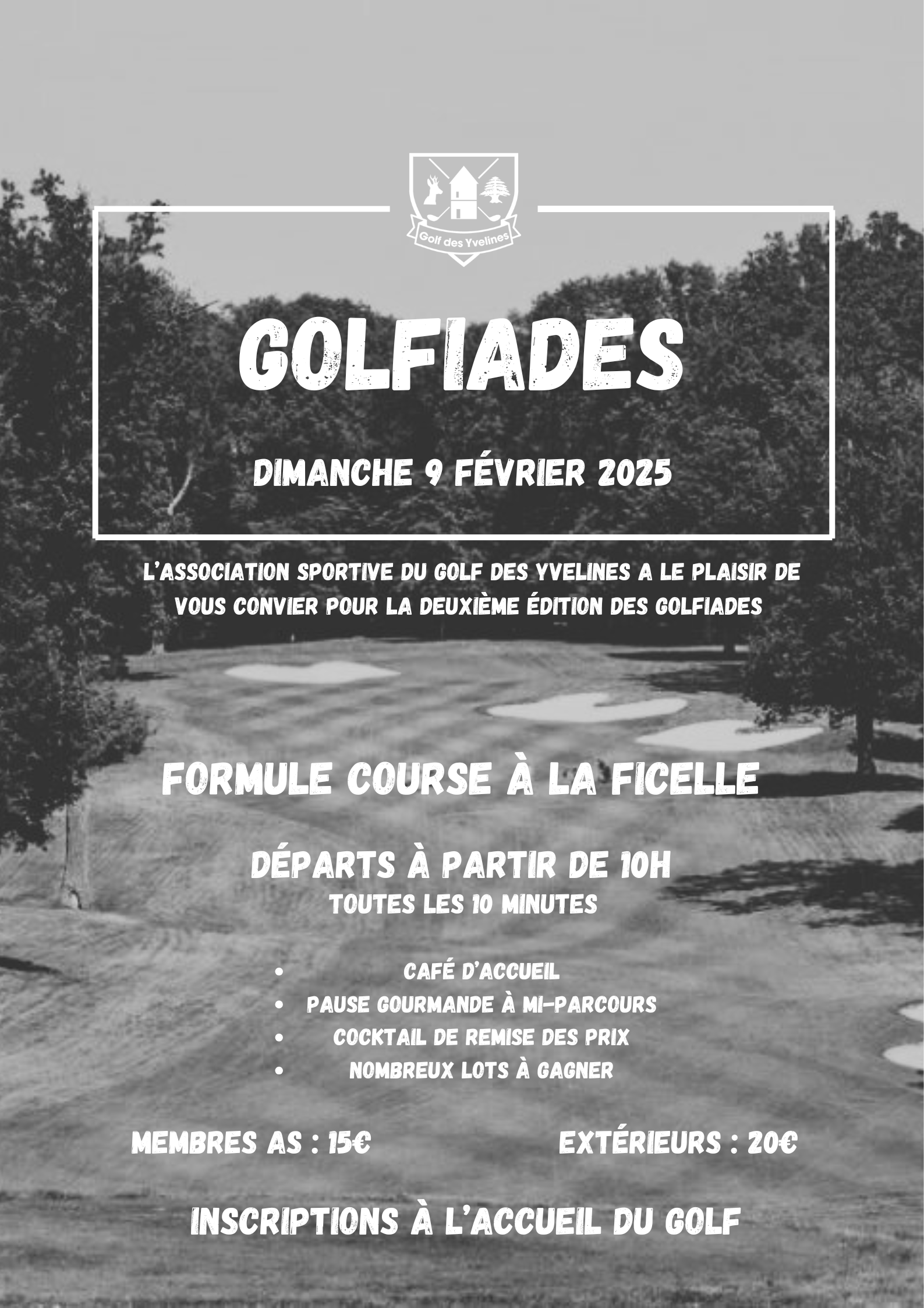 Les inscriptions sont ouvertes dès aujourd’hui à l’accueil du club ou par téléphone. Ne tardez pas, les places pour la compétition et le dîner sont limitées.